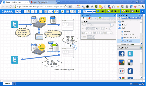 図はcacooというWebアプリで書いたものだ。左図のようにブラウザ内で動作する。「【構成】barasu.orgの構成9月版(公開懺悔日記)」にて教えてもらった。実に素晴らしい。お絵かきのほうは「pixlr」が割といい。こちらも、もう少し機能が増えれば gimp を捨ててもいいかも。両方ともWebアプリとしてchromeに入れられるのも点数が高い。