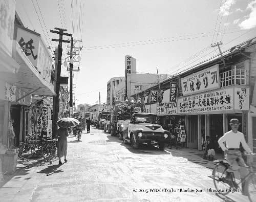 下写真には普天間琉映館が写っているそうです(cf. 當間 早志 – 前に紹介した動画の写真、「Blackie San…)。私にはわかりませんでした。すごいです。