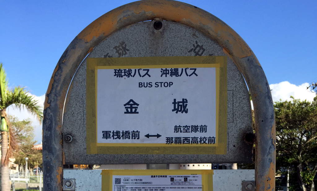 復帰前を偲ばせる名前の第一ゲートバス停。金城バス停を探している人は迷うと思う。