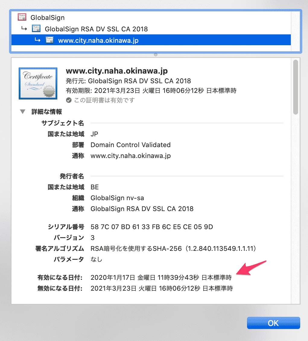 有効になる日付: 2020年1月17日 金曜日 11時39分43秒 日本標準時