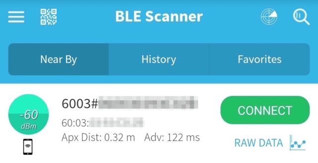 AndroidのBLE Scannerで叩いてみます。6003#なんちゃら という名前でアクセスできるようです。