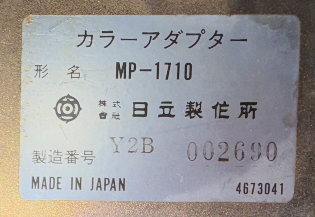 Jr.本体はY3D、2万台以上は出荷されたようですので、半分程度はカラーアダプタと一緒に買われたのでしょう。MP-1710は ついで買いしやすい価格(1万円)だし。