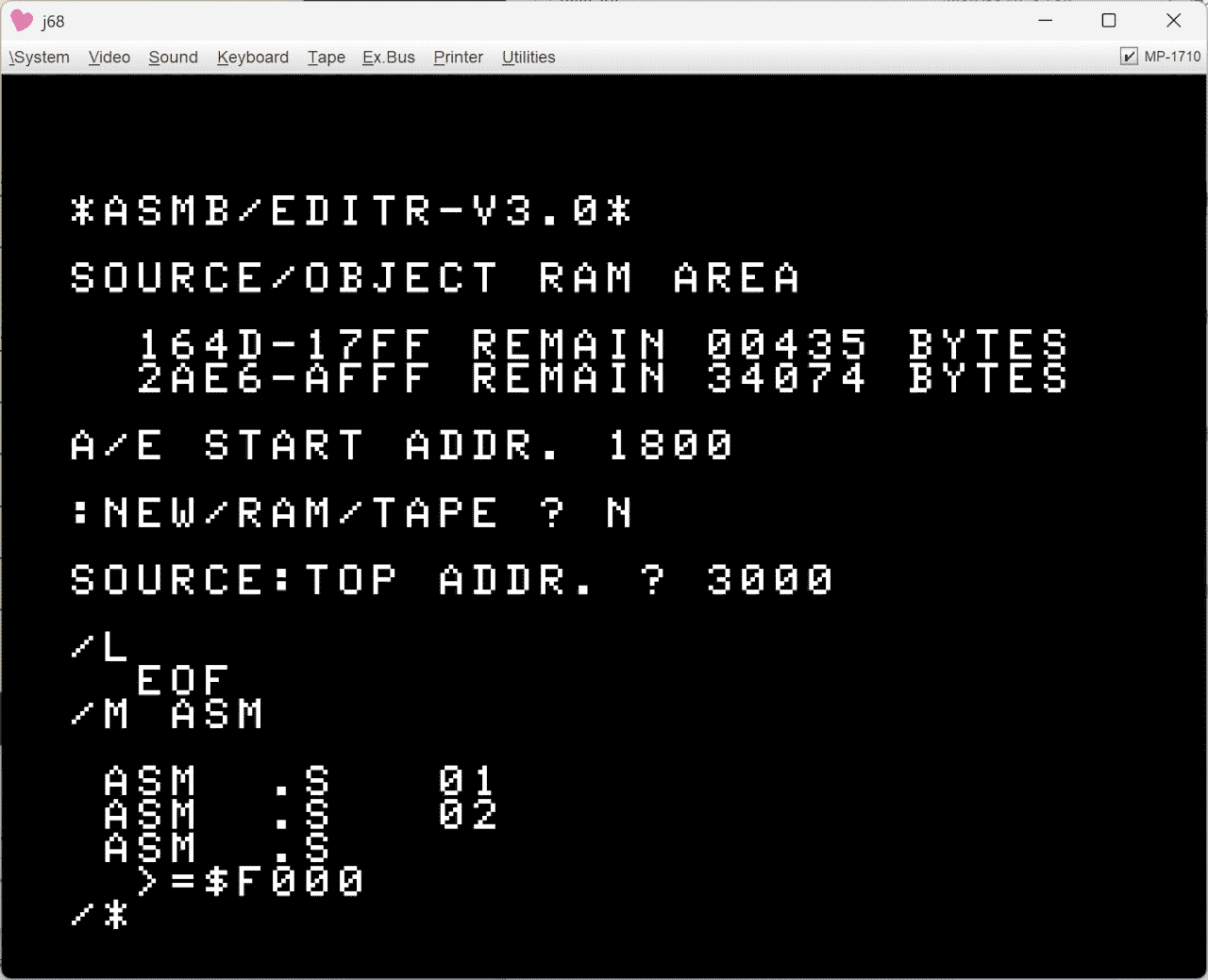 読み込むソースプログラムの位置を変更したい場合は、事前に == でアドレスを指定すれば良い。LOADの際は =(開始ポインタ) で指定したアドレスに読まれる。