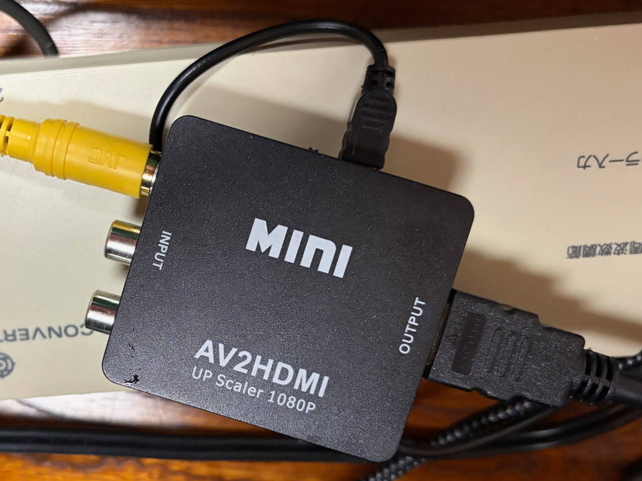 以下の接続でキャプチャできました。RCA-HDMI変換器はパソコン工房で買った安物です。1500円ぐらい。